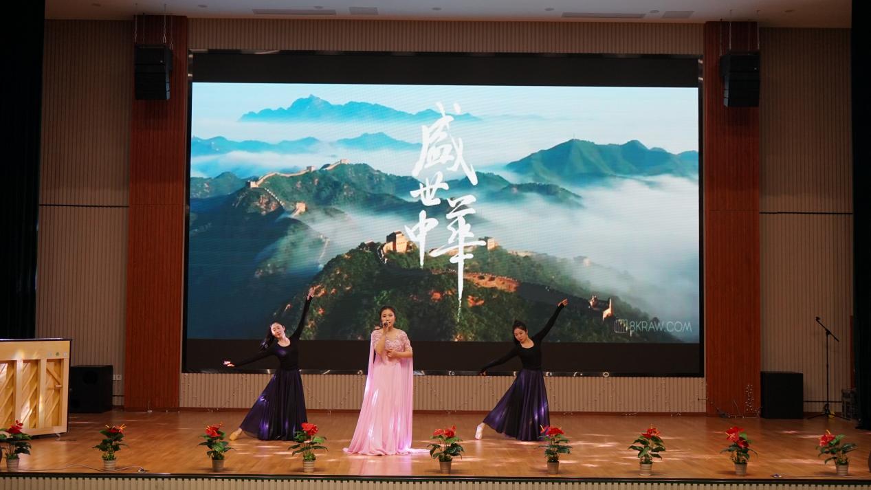 联欢会现场,气氛热烈,精彩纷呈,观众席不时爆发出阵阵掌声、欢呼声,老师们挥舞着应援棒倾情互动。我校各分工会的老师以小品、歌曲、舞蹈、朗诵、走秀、钢琴演奏等艺术形式展现了长征人朝气蓬勃、昂扬向上的精神风貌,也在新年来临之际为校园营造了浓厚的节日氛围。联欢会在浪漫的《风吹麦浪》的歌声和热情洋溢的舞蹈《最炫民族风》中拉开帷幕,宿管阿姨们用精彩的舞蹈表演瞬间点燃现场氛围。小品《快乐智能人》将老师们的日常教育教学工作场景进行改编,创意新奇,构思巧妙,笑点密集。舞蹈《爵士风街舞》热情、自由,舞姿动感、流畅。歌曲《如愿》以温暖的歌声娓娓道出对父母深切的情感,感人至深。在节目《砥砺前行 青春奋进》中,商务与贸易学院的老师们以自信的姿态、饱满的热情分别用汉语、西班牙语、英语、法语、俄语、韩语、日语等7种语言表达了争做新时代“四有好老师”的决心和信心。在钢琴独奏《我和我的祖国》和歌伴舞《祖国之恋》中,演奏者指尖于琴键飞扬,舞者们伴着歌者嘹亮的歌声优雅起舞。《白衣天使时尚秀》通过走秀的形式将护理用品和护理常识搬上舞台,展现了护理与健康学院教师风采的同时更凸显出了护理学院的专业特色。马克思主义学院的老师通过朗诵《大写的中国》在现场声情并茂地为大家上了一堂思政课。学校的辅导员、老师们,将工作日常和对学生成长成才的关心改编进了《爱你》和《辅导员联盟阵线》中,将对未来的期待演唱进了《相亲相爱》和《我相信》中,引发台上台下的热情互动,使现场欢呼声不断。在合唱《我和我的祖国》中,两岸教师满怀激动与深情,唱响对祖国的祝福。校舞蹈团自编自排的舞蹈《人海茫茫 但我记得》,同学们用曼妙的舞姿抒发着对生命的热爱。